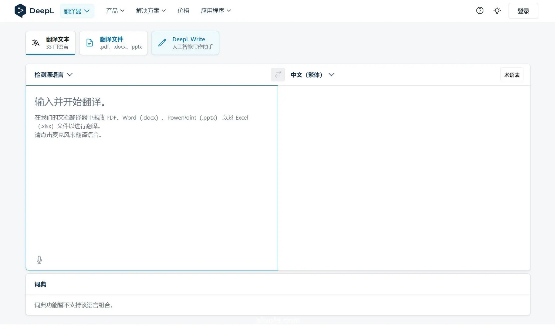 分享一款较为热门的翻译工具DeepL,这是一款高精度的人工智能翻译工具,除了像普通翻译工具一样输入内容翻译外,它还支持上传翻译多种格式的文档,如 PDF、Word、PowerPoint 以及 Excel 文件。