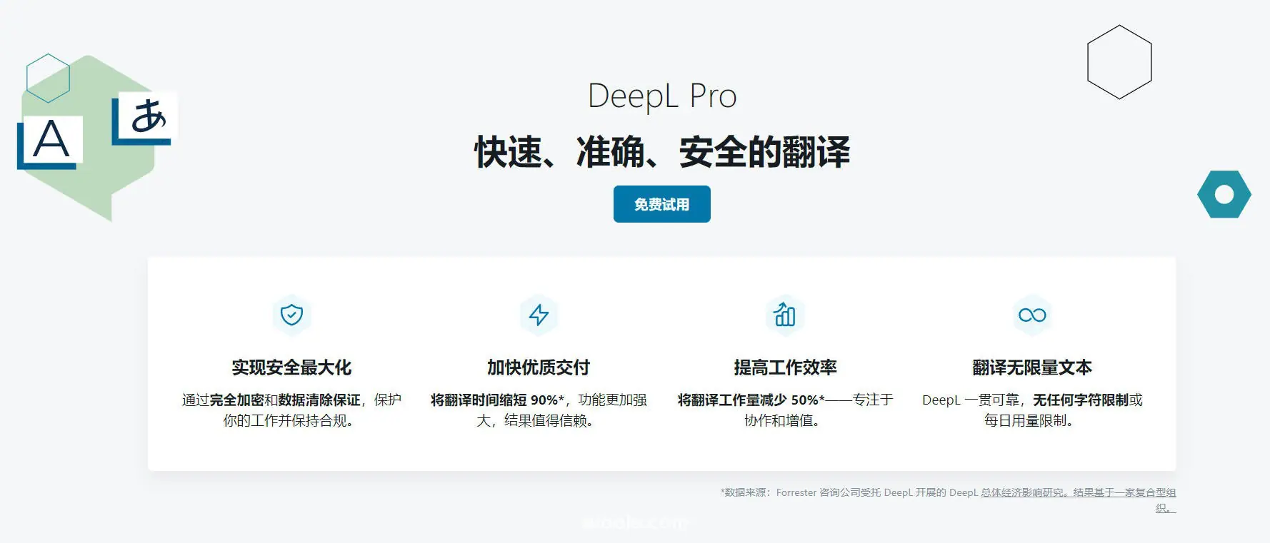 DeepL免费版本允许用户每月翻译多达 1,500 个字符的文本和 3 份不可编辑文档,同时还可添加 10 个术语表条目。